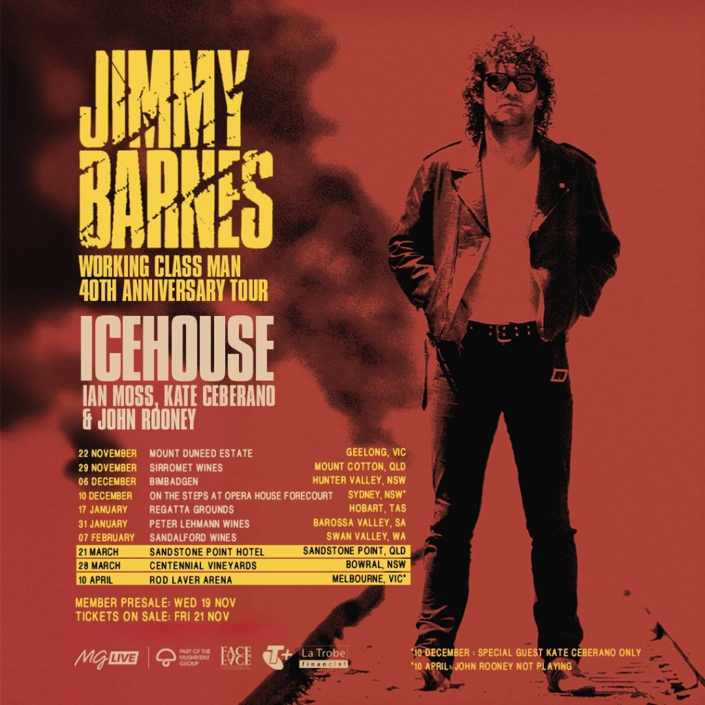 An email with access links to the exclusive fan presale will be sent out on Tuesday 18 November at 6pm AEDT, to members of the Jimmy Barnes mailing list. Sign up for presale access here: https://www.jimmybarnes.com/mailinglist/